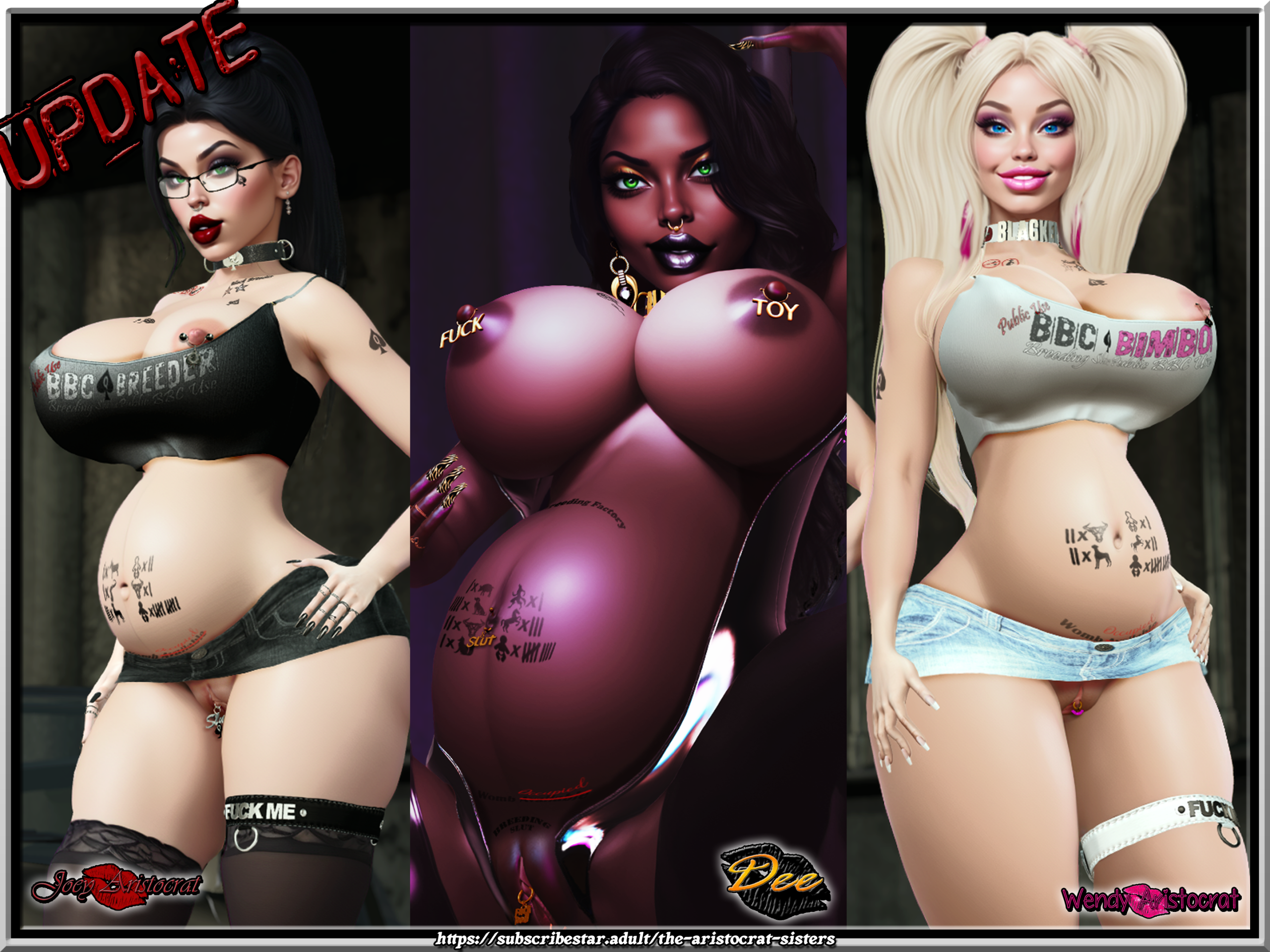 Well, turns out her husband not only enjoys pimping out his whore wife but also enjoys seeing her get knocked up by, well, whoever and WHATEVER she can! Apparently, he can’t keep his dick out of her when another man’s baby is growing in her belly. He’s a rich club and business owner and he’s just as happy knocking up a slut or three as Dee Is getting knocked up! Those two are awesome! You may remember he took the two of us out to that swingers’ night. She’s so lucky!